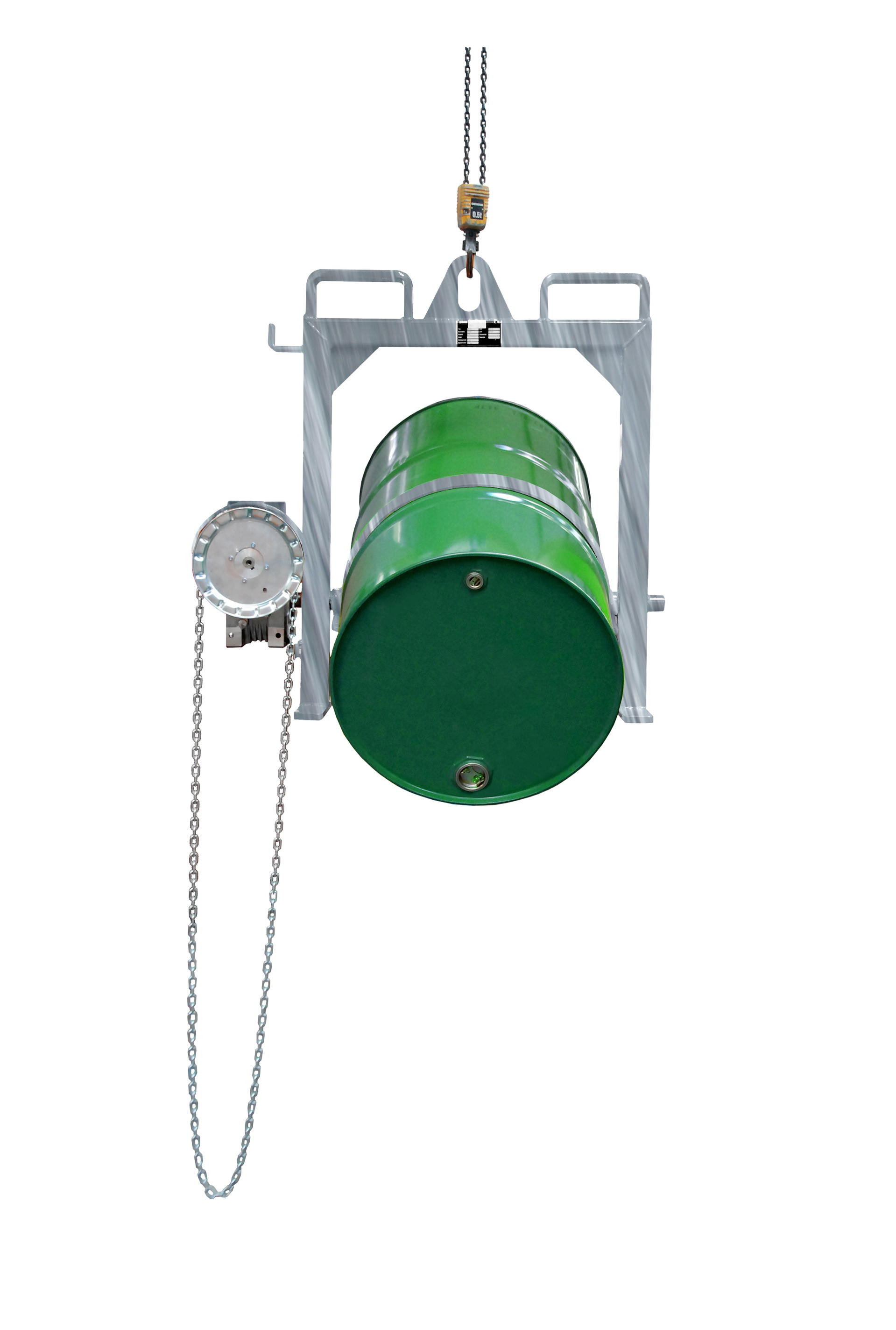 Aufnehmen, Transportieren und dosiertes Entleeren von 200-l-Stahl-Spundfässern und Stahl-Deckelfässern
