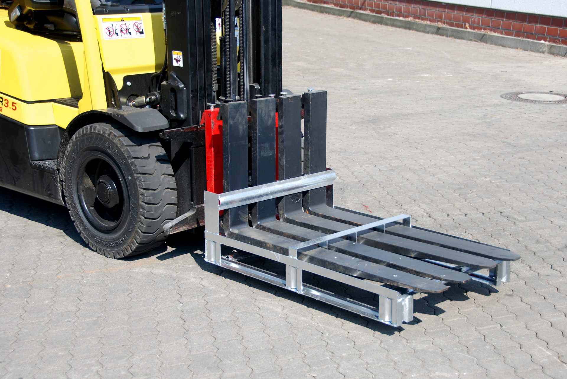 - Lagerung von 4 Gabelzinken je Palette, max. Gabelquerschnitt 180 x 90 mm