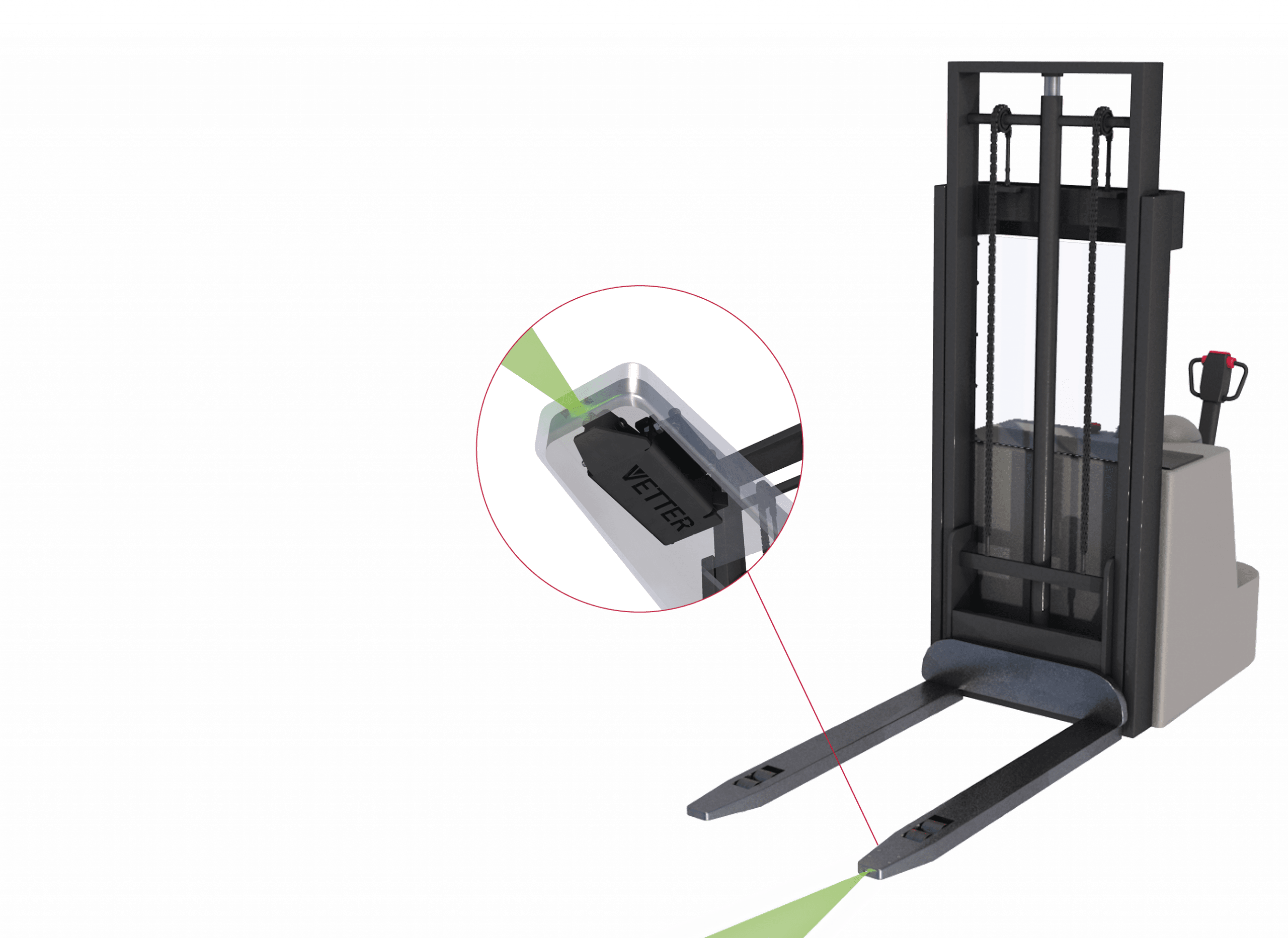 Die Zielhilfe COBRA erleichtert das präzise Anvisieren von Ladungsträgern im Regal und unterstützt Staplerfahrer beim Einlagern, Auslagern und Umsetzen von Waren mittels einer grünen Laserlinie an der Spitze der Hohlgabelzinke.
