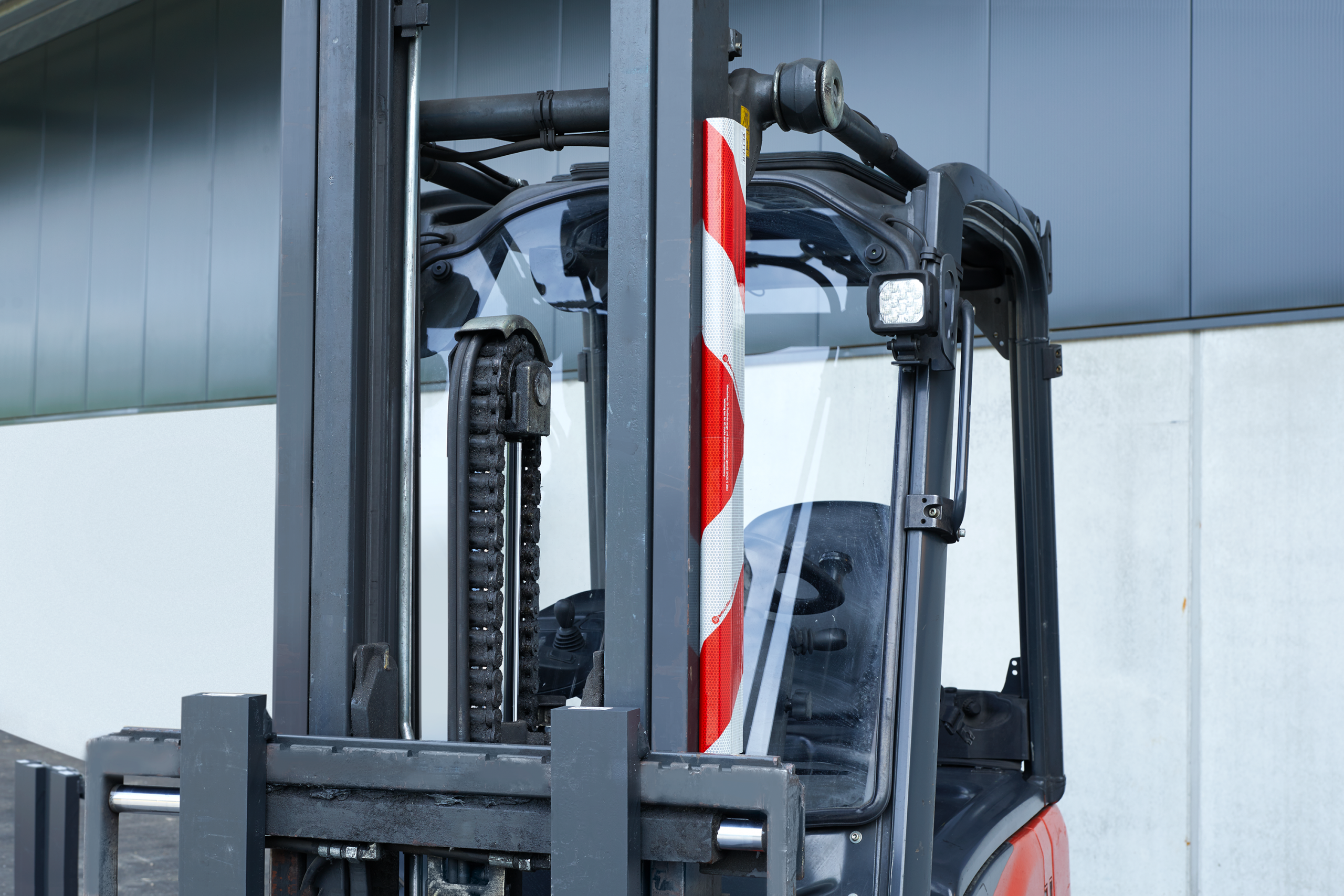 Der magnetische Warnbalken ZEBRA von VETTER sorgt mit einer Spezial-Reflektorfolie für höchste Sicherheit im innerbetrieblichen Transport und Straßenverkehr. Die starke magnetische Haftung ermöglicht ein schnelles und einfaches Anbringen sowie Abnehmen an den Spitzen der Gabelzinken.